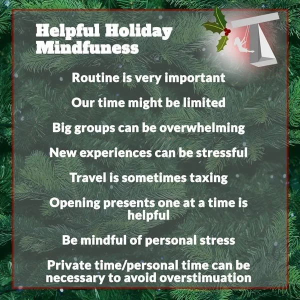 The holidays can be stressful for everyone, even for those of us without special needs or sensory processing differences. There are plenty of ways we can be mindful of ourselves, as well as help others in our lives be mindful when gathering together.